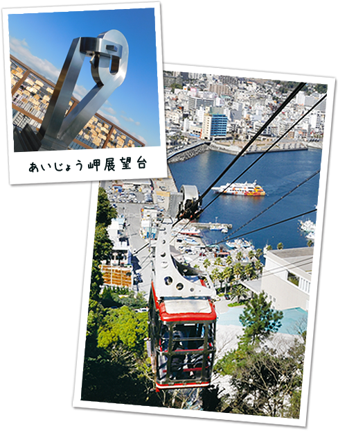 レトロなゴンドラに揺られて、3分間のショートトリップで「あいじょう岬展望台」に到着します。
