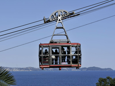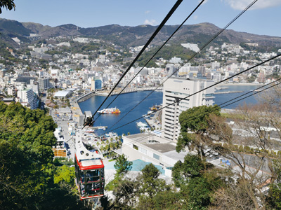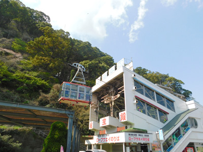 温泉街に程近い熱海港近くから、八幡山山頂まで一気に昇るアタミロープウェイ。